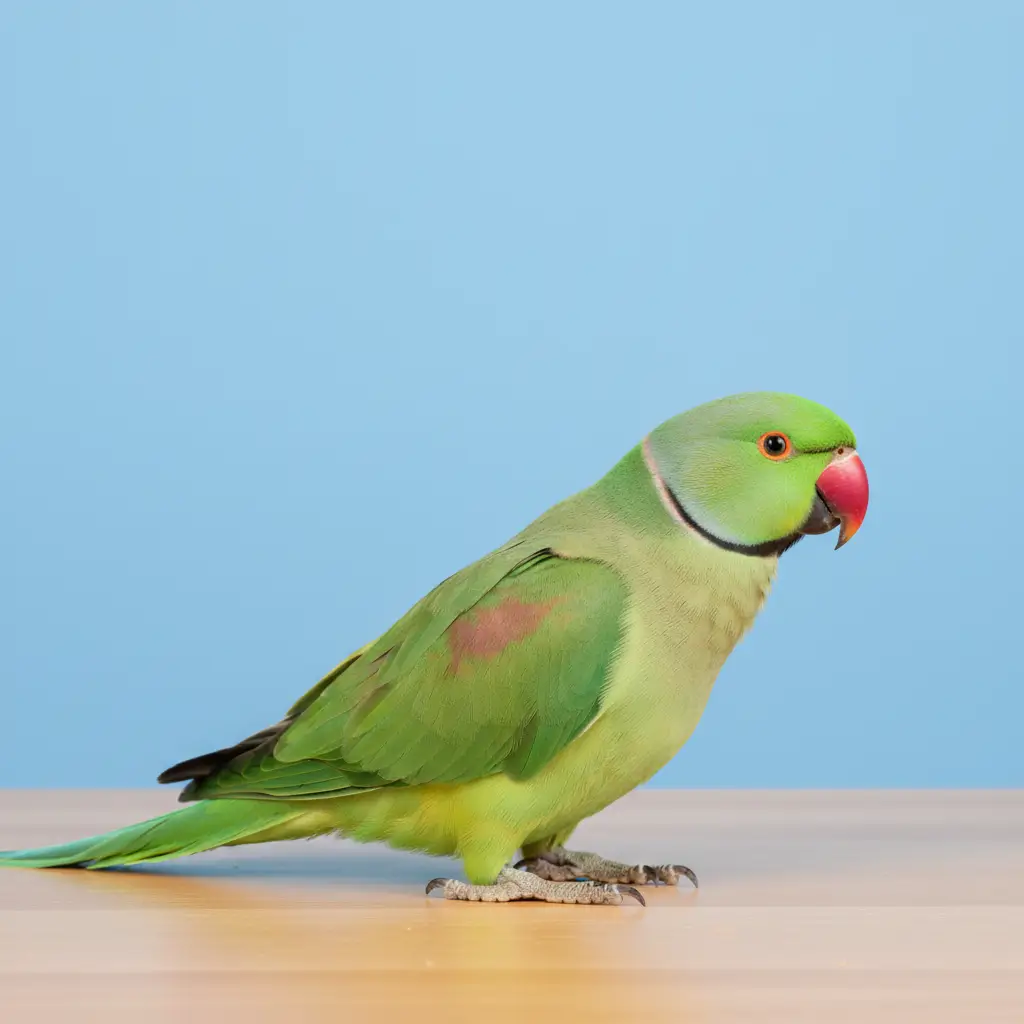 Tamability and Maintenance: Green Ring Necks are highly tamable and make affectionate, engaging pets. They are a moderate to high maintenance bird. Their high intelligence requires several hours of daily mental stimulation through foraging and puzzle toys. They also need ample out-of-cage time for exercise. Owners must be prepared to manage the often challenging “bluffing” phase during puberty with consistent, firm, and positive training. A tall, sturdy cage is essential for their long tail. Their commitment is long-term, typically 25-30 years.